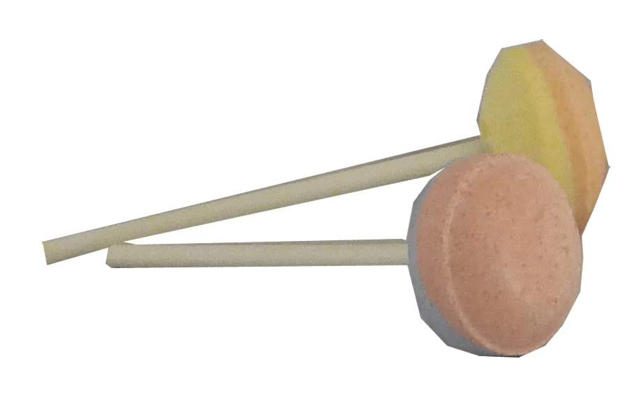 Each tub contains a mix of yellow and pink lollipops and blue and pink lollipops.
