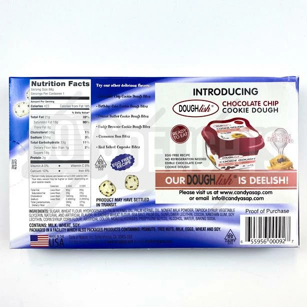 Ingredients: Sugar,Β WheatΒ Flour, Hydrogenated Palm Kernel Oil, Palm Kernel Oil, NonfatΒ MilkΒ Powder, Tapioca Syrup, Vegetable Glycerin, Natural & Artificial Flavour, BleachedΒ WheatΒ Flour, Sea Salt, Palm Oil, Sunflower Lecithin, Cocoa, Xanthan Gum,Β SoyΒ Lecithin, Corn Syrup, Corn Flour, Artificial Colour, Monoglycerides, Propylene Glycol, Alcohol, Water, Baking Soda,Β