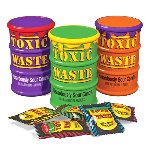 Comes with 5 hazardously sour flavours: Apple, Watermelon, Lemon, Blue Raspberry and Black Cherry.