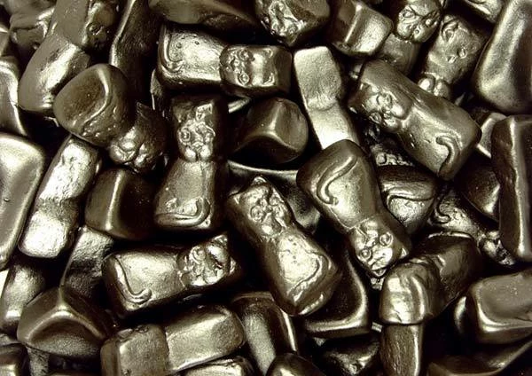Ingredients: Sugar, Glucose Syrup, Modified Starch, Gelatine, Liquorice extract, Colour (Caramel), Ammonium Chloride, Flavours, Vegetable Oil (Coconut), Glazing Agent: Beeswax.