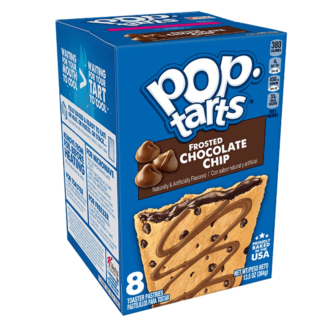 A pop tart filled with gooey chocolate sauce, surrounded by a choc chip-filled crust and lightely coated in cream chocolate frosting. Waking up is finally something to look forward to.