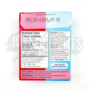 Ingredients: Dextrose, Sugar, Malic Acid, Corn Syrup, Flavours, Carnauba Wax, Colour.Β